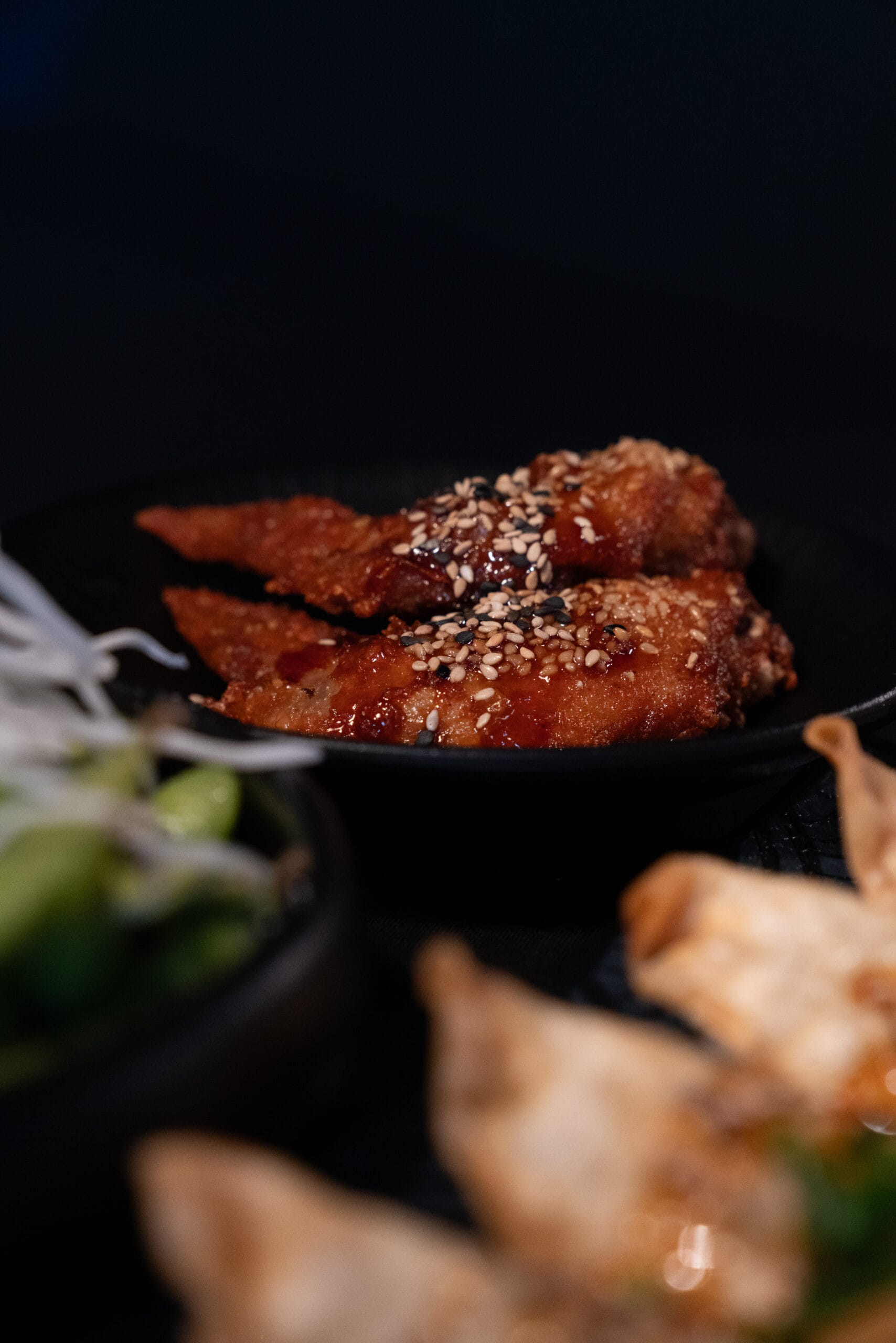 Unsere Chicken Wings nach japanischer Art sind knusprig frittierte Hähnchenflügel, die mit aromatischem Sesam verfeinert sind. Diese würzigen Wings bieten eine perfekte Kombination aus saftigem Fleisch und einer knusprigen Hülle, ideal als herzhafter Snack oder Vorspeise.
