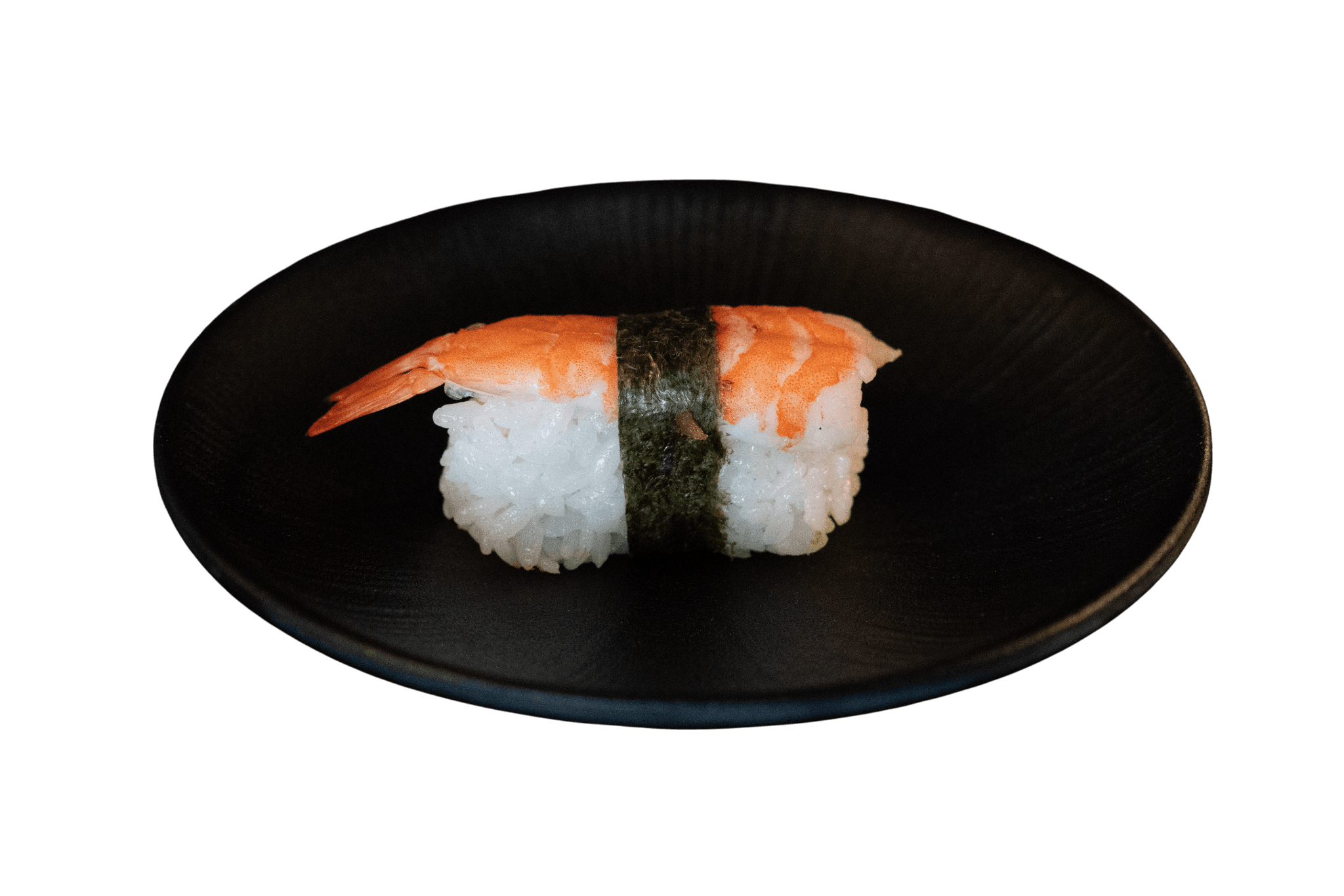 Das Ebi Nigiri ist ein klassisches Sushi-Gericht, das die Süße und zarte Textur von Garnelen perfekt zur Geltung bringt. Eine saftige, leicht gekochte Riesengarnele wird auf einem handgeformten Bällchen aus gesäuertem Sushireis platziert. Die natürliche Süße der Garnele harmoniert wunderbar mit dem mild gewürzten Reis, was dieses Nigiri zu einem beliebten Klassiker macht.