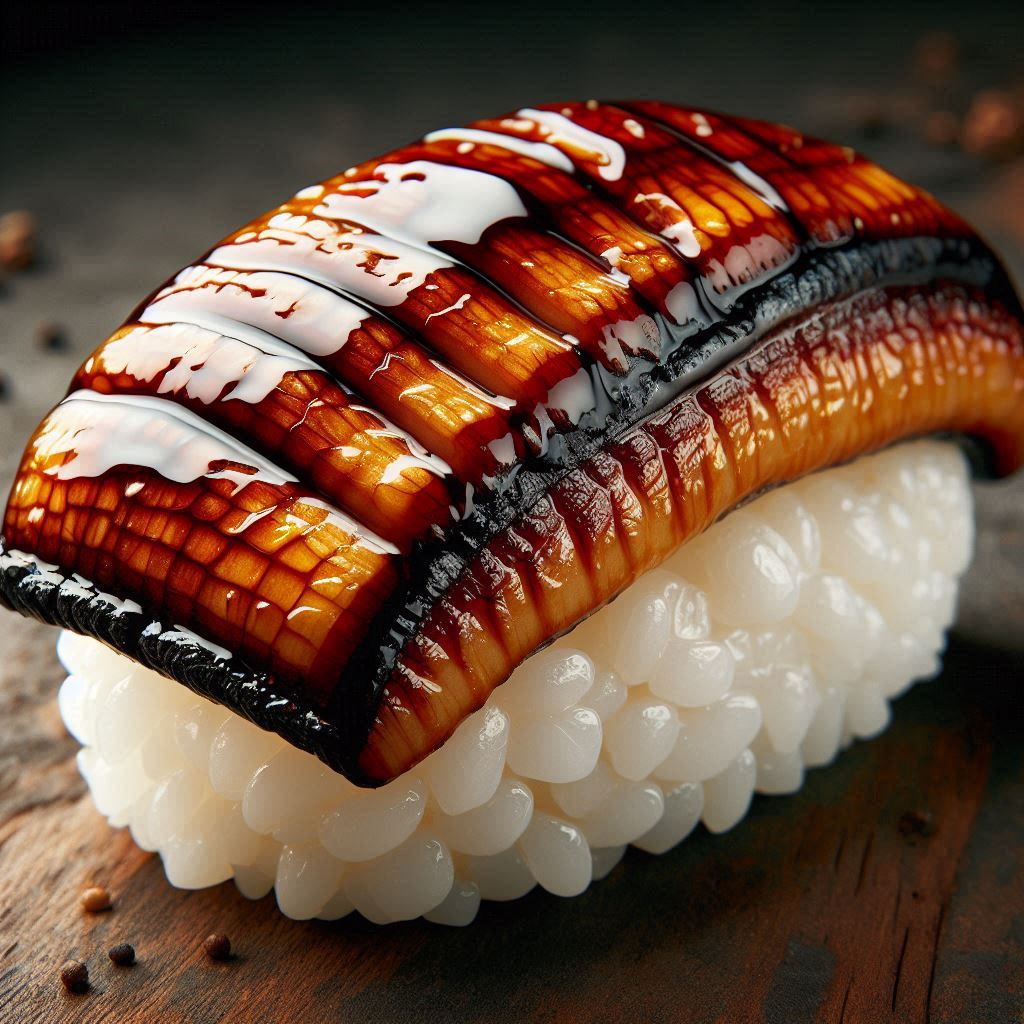 Das Unagi Nigiri ist ein wahrer Genuss für Liebhaber der japanischen Küche. Ein zartes, gegrilltes Aalfilet (Unagi) wird auf einem perfekt geformten Bett aus gesäuertem Sushireis angerichtet. Das Aalfilet wird mit einer hausgemachten Spezialsoße bestrichen, die ihm einen süß-würzigen Glanz verleiht. Dieses Nigiri bietet eine perfekte Balance aus zartem Fisch und der würzigen Intensität der Soße, die jedem Bissen Tiefe und Fülle verleiht.